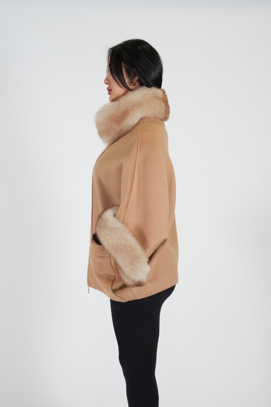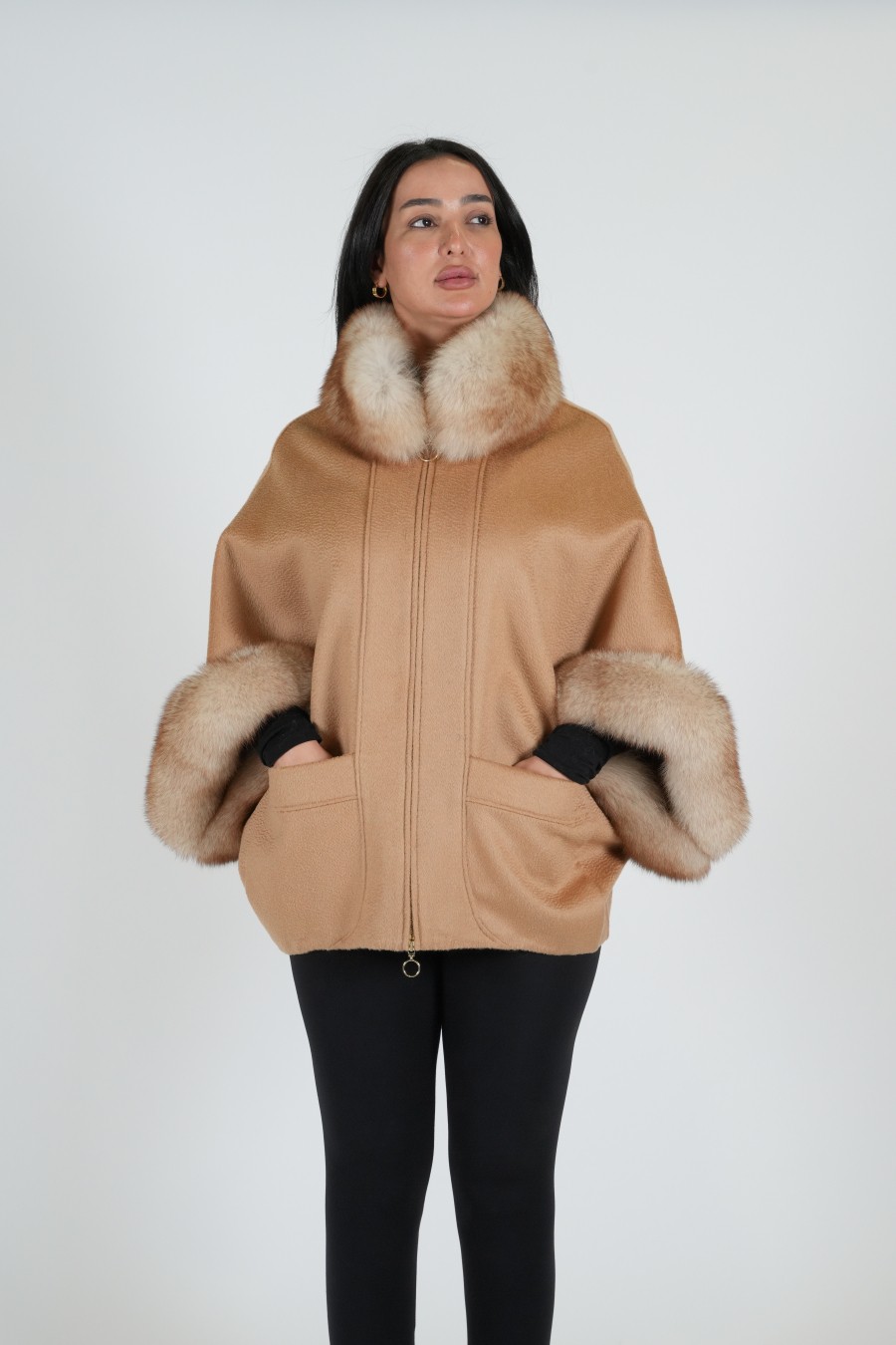 cashmere jacket with fur combines the luxurious softness of cashmere with the elegant warmth of fur, creating a sophisticated and functional garment suitable for cooler climates.  Jackets may have button  closures, Functional pockets are  included