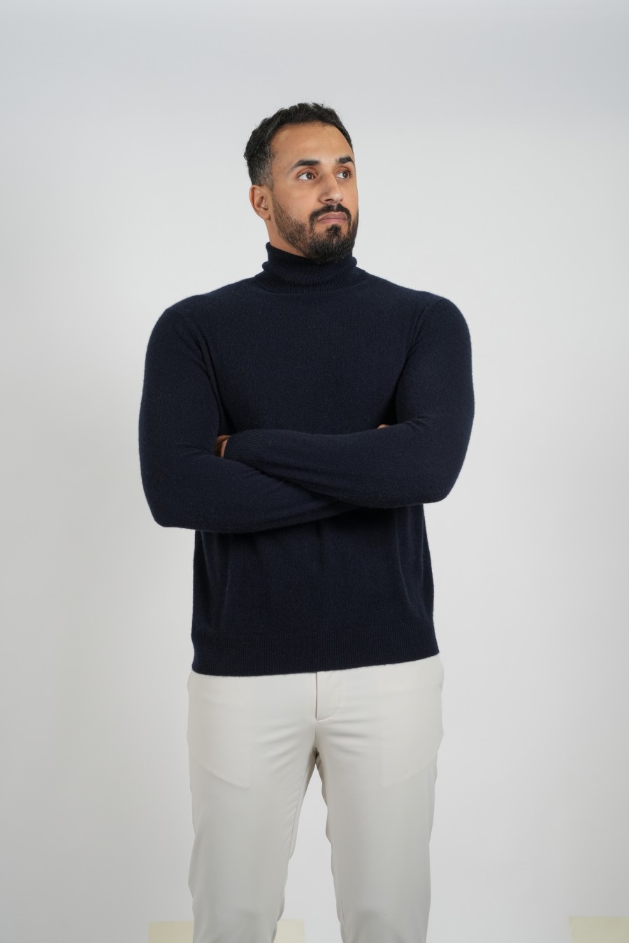 قميص كشمير-ياقة عالية - أسود