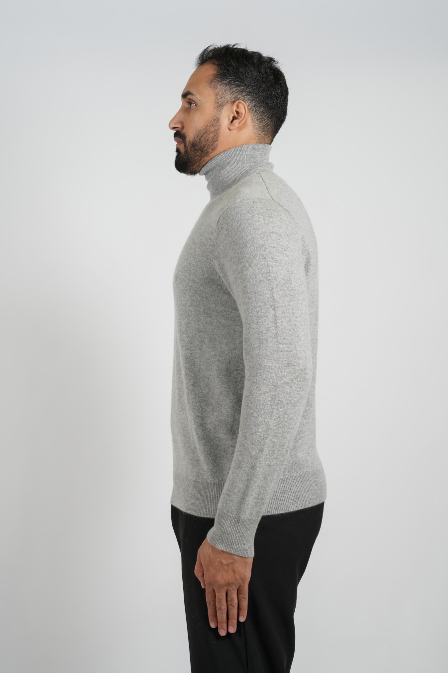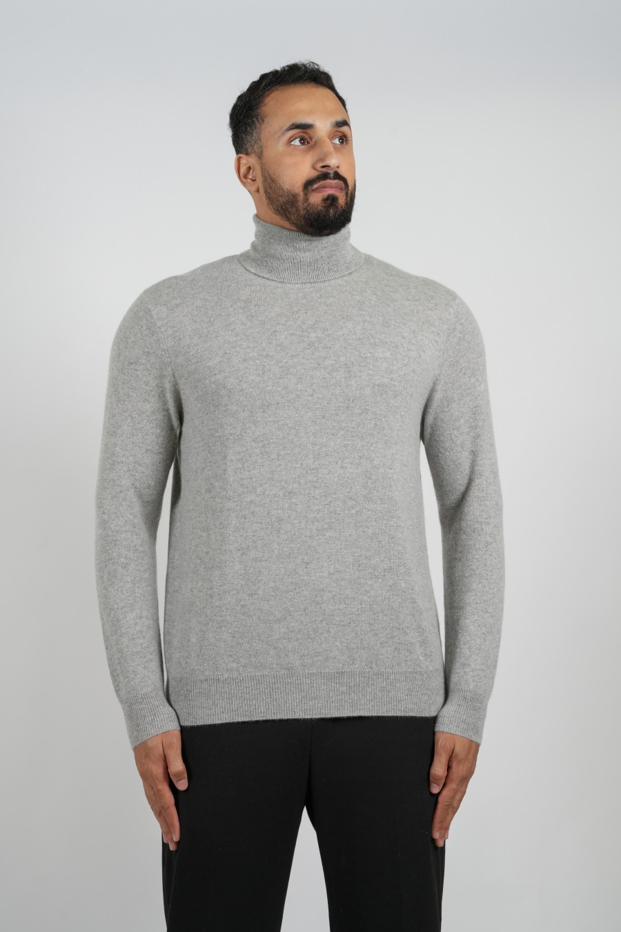 قميص كشمير-ياقة عالية - رمادي