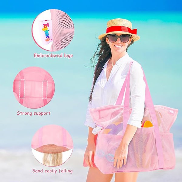 Tagitary Mesh Beach Bag-Pink